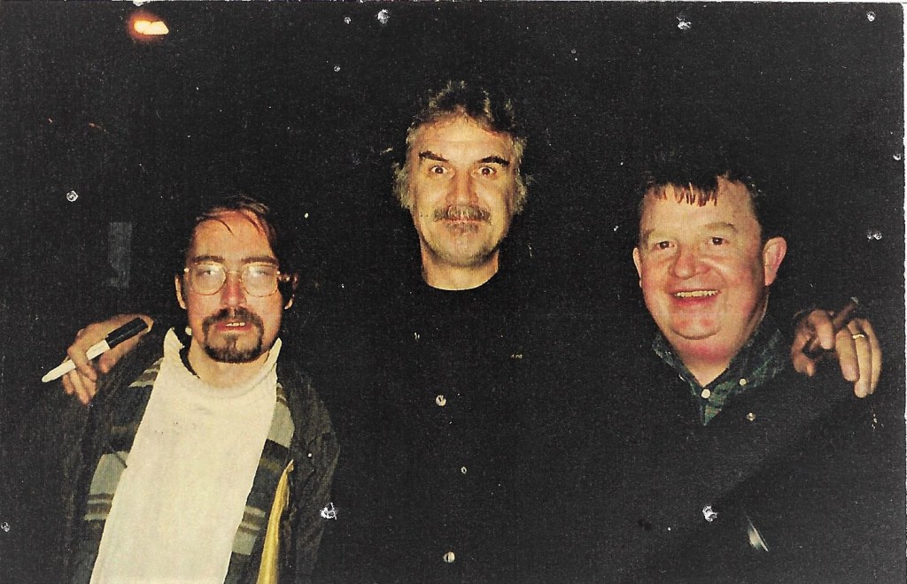 We wrote to Connolly’s management, Tickety Boo, sent the script. They said they’d pass it on. We heard nothing, so we decided to track the man down. He was appearing at the Hammersmith Odeon. We booked in a nearby hotel and went to the gig. We waited in the dark by the stage door. When it opened, we were greeted by none other than Billy’s American friend, Robin Williams. We chatted briefly and then Billy came out. We presented him with the screenplay and he was very generous with his time. We talked for perhaps 45 minutes during which he regaled us with stories about his home in Scotland and asked about the character of Kidd “Does he wear those lovely 16th century shirts wi’ the huge floppy sleeves?” We assured him he did. He said he’d check it all out and Mark and I went away and got drunk. Weeks passed.